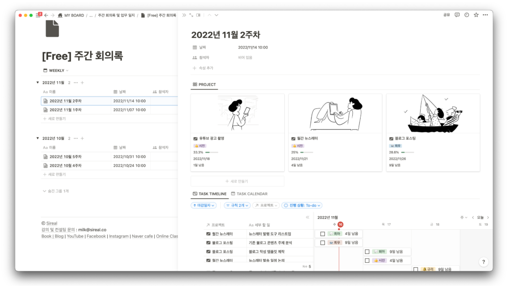 이번 글은 업무에 필수로 사용되는 노션 주간 회의록과 업무 일지 템플릿을 소개하고자 합니다.