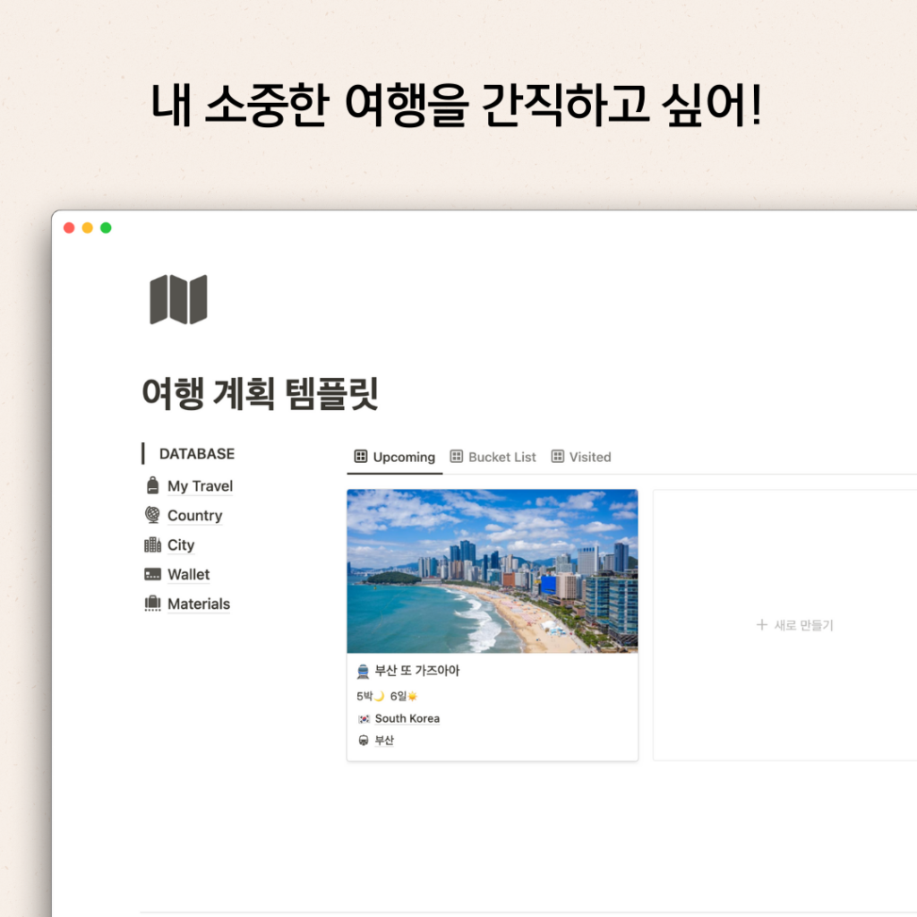 이번 여행부터는 나만의 여행 기록장을 만들어보세요. 여행을 가기전 두근두근한 설레임과 여행을 다녀온 후 몽글몽글한 여운까지 모두 담아둘 수 있습니다.