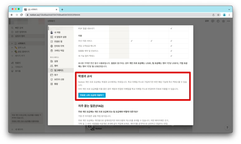 노션 유료 요금제, 무료로 사용하기(교육 요금제) #