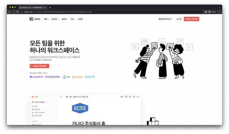 아래 링크를 통해 노션 홈페이지에 들어와봅시다.